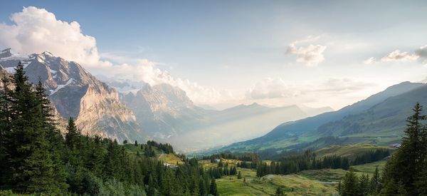 Alpines Panorama mit Berghotels in der Schweiz